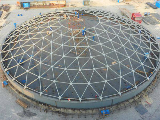 與平板網(wǎng)架相比,網(wǎng)殼的受力性能好,剛度大,自重小,用鋼量省,是適用于中、大跨度建筑屋蓋的一種較好的結(jié)構(gòu)型式。 網(wǎng)殼結(jié)構(gòu)常見型式有圓柱面網(wǎng)殼、圓球網(wǎng)殼和雙曲拋物面網(wǎng)殼。